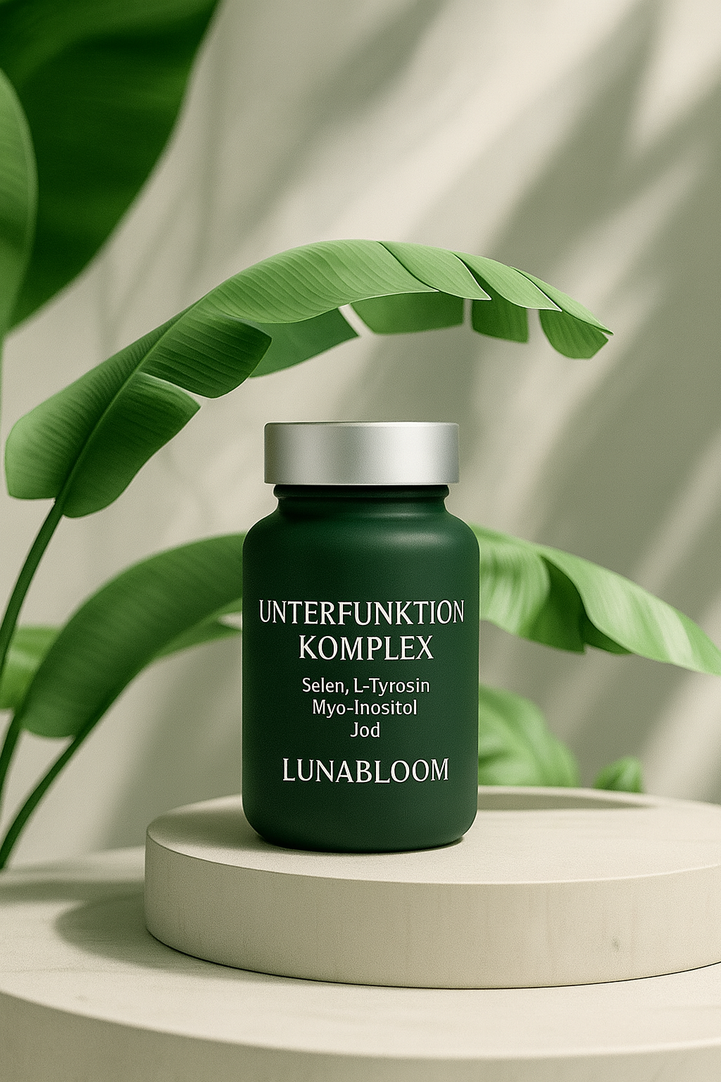 Der Unterfunktions-Komplex ist dein 4-in-1 Turbo für die Schilddrüse: Selen schützt, Myo-Inositol reguliert, L-Tyrosin baut Hormone auf und Jod zündet die Produktion. Wieso Jod? es ist für die Hormonproduktion unverzichtbar ist, wenn keine Autoimmunprozesse im Weg sind.